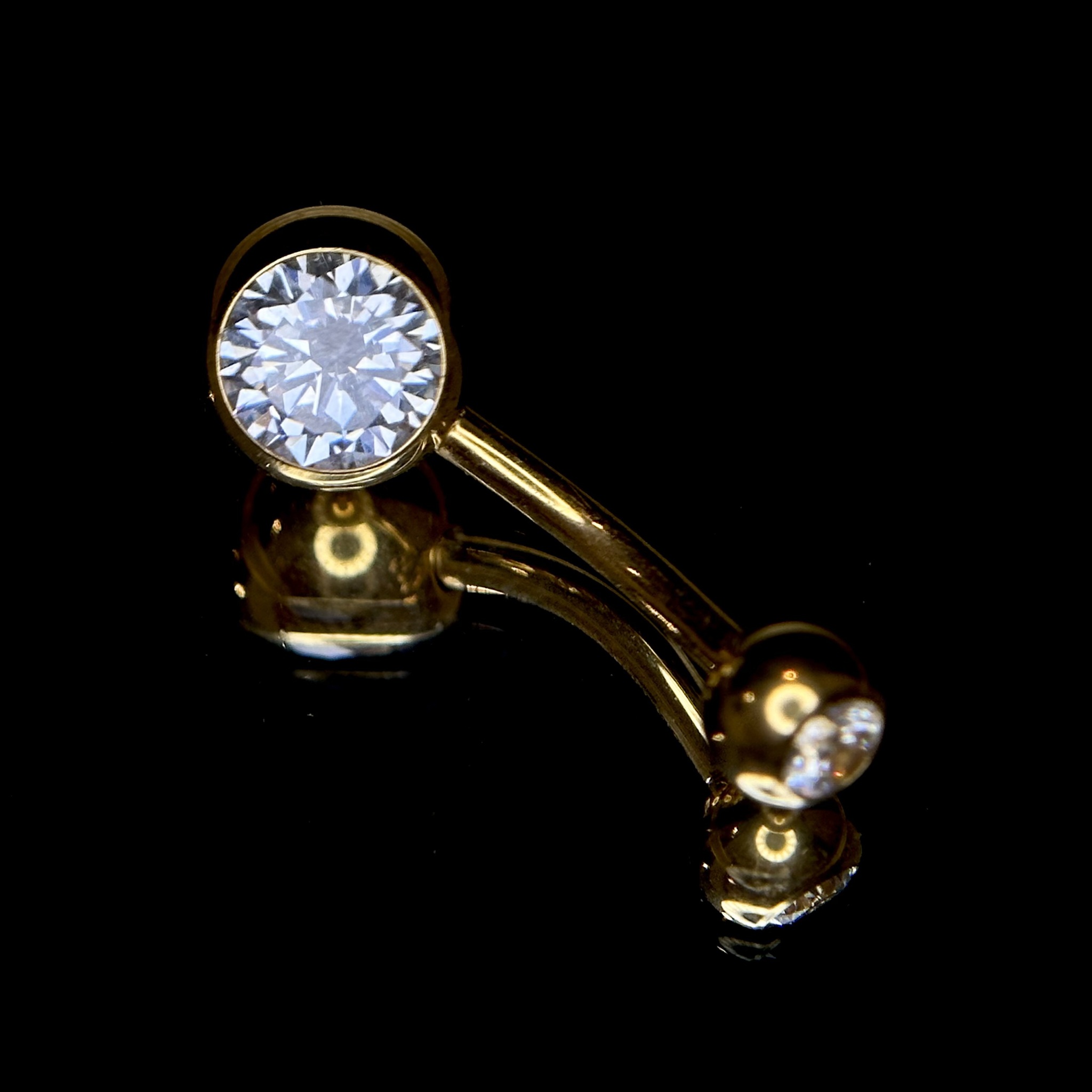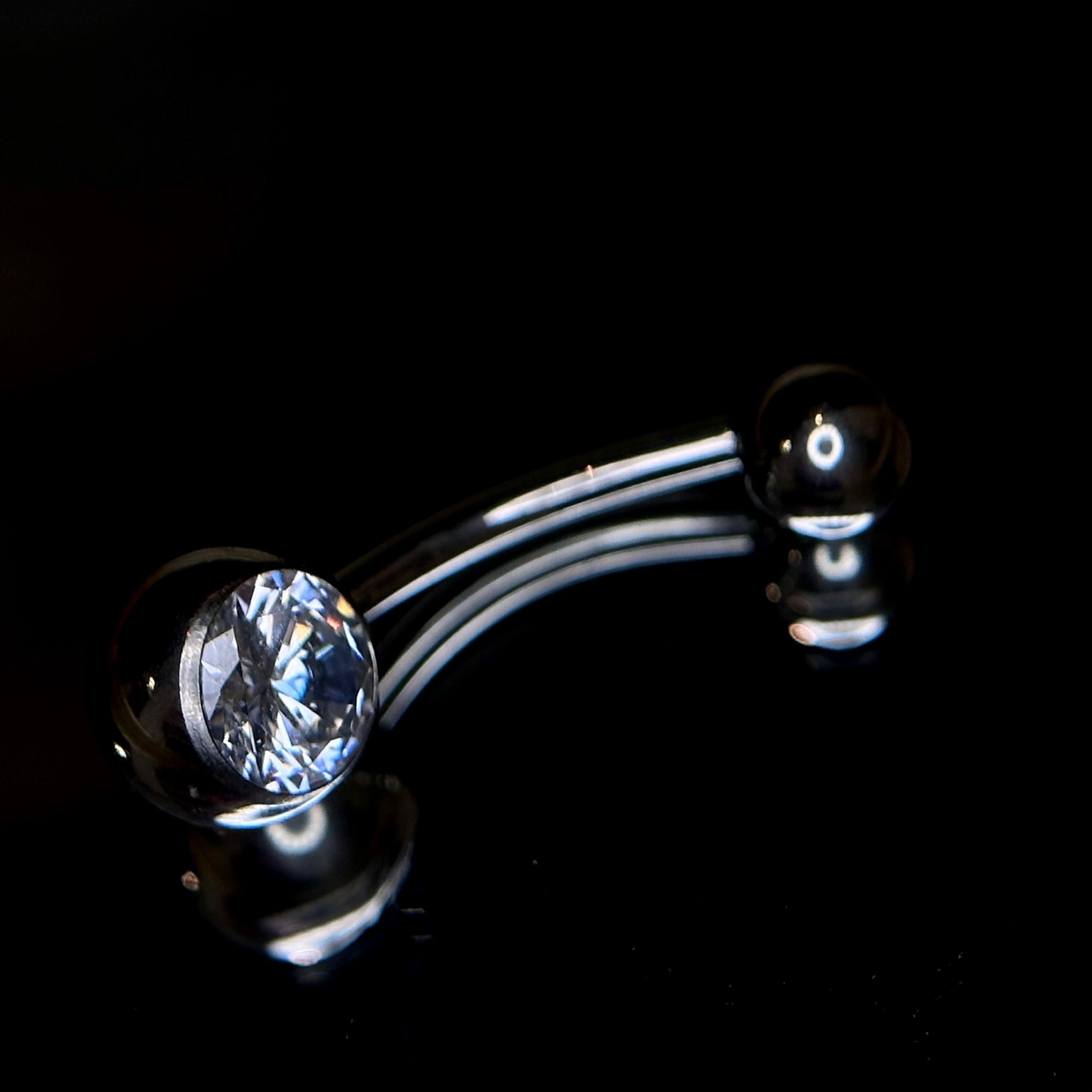 Банан в пупок из имплантационного титана с прозрачными фианитами