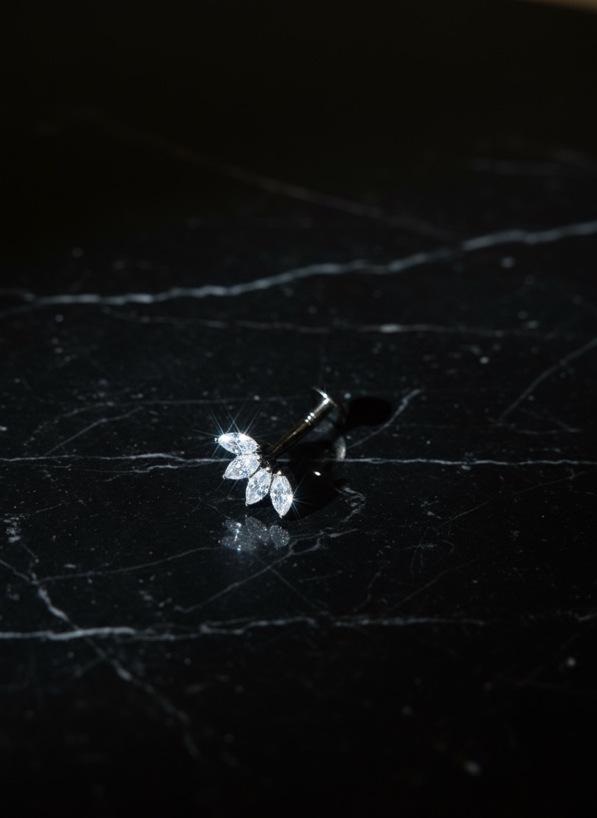 Банан в пупок из имплантационного титана с прозрачными фианитами