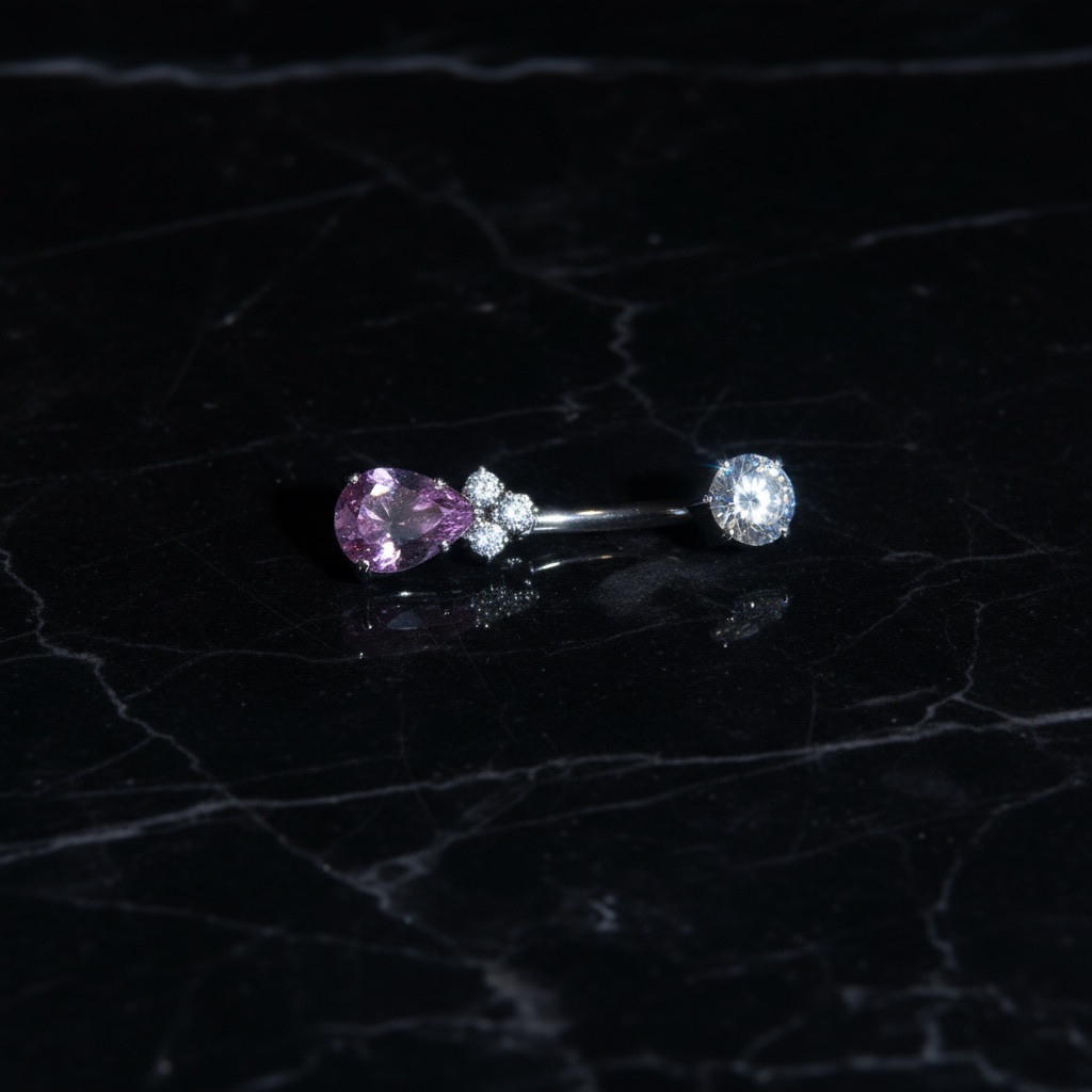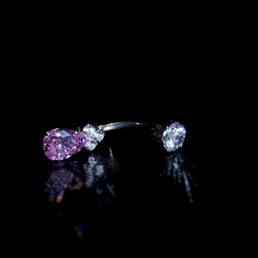 Банан в пупок из имплантационного титана с прозрачными и розовыми фианитами