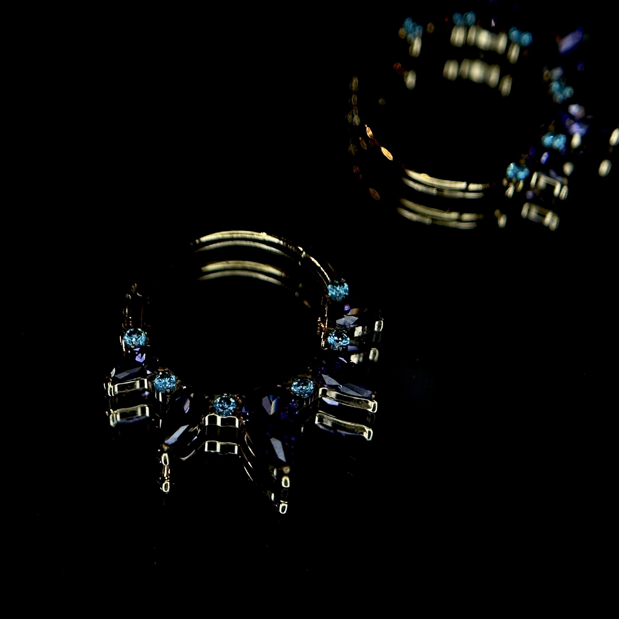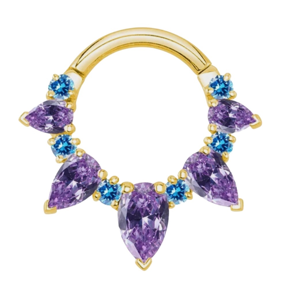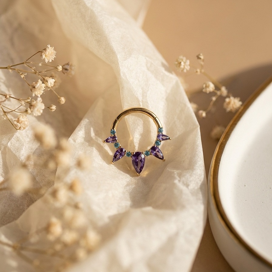 Кликер из имплантационного титана с прозрачными фианитами и PVD покрытием золотистого цвета (под желтое золото)