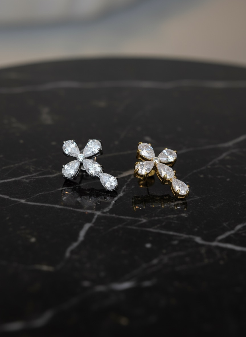 Топ из имплантационного титана в виде креста с прозрачными фианитами