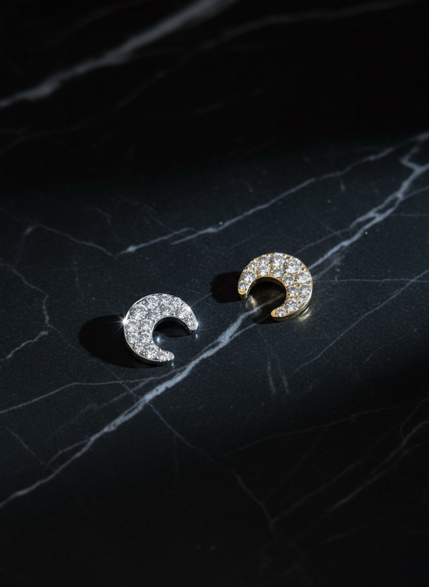 Топ из имплантационного титана в виде полумесяца с прозрачными фианитами
