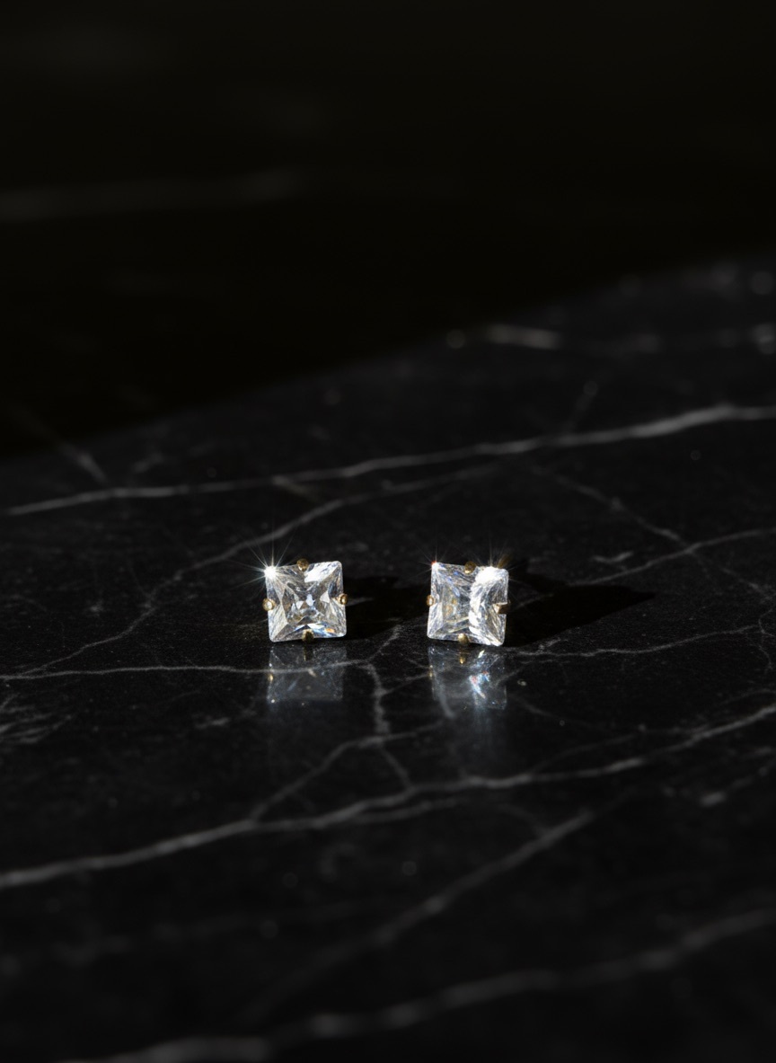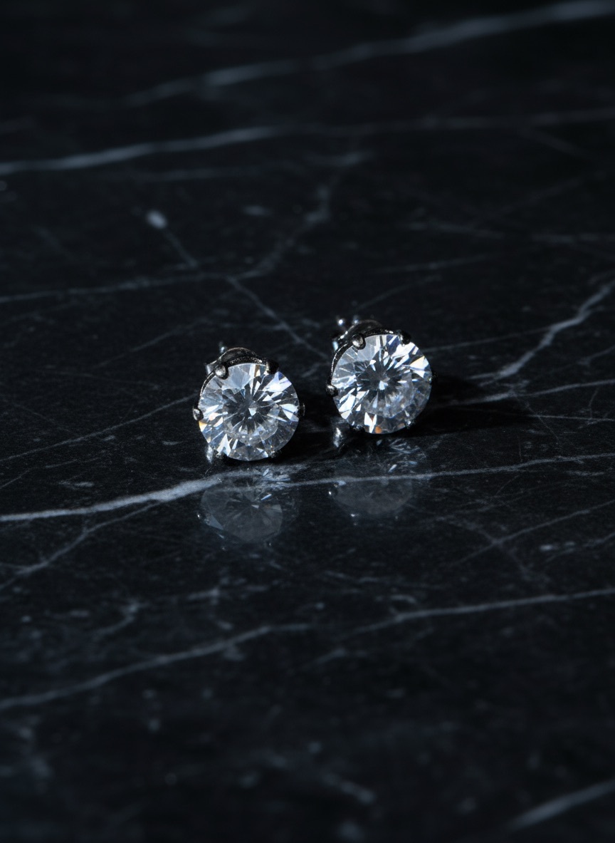 Пара гвоздиков из имплантационного титана с прозрачными фианитами