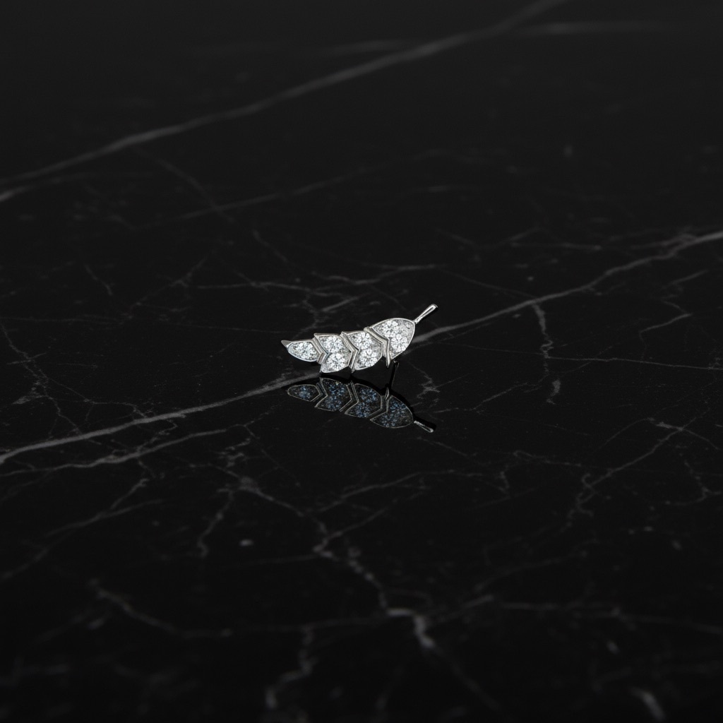Топ из имплантационного титана в виде пера с прозрачными фианитами