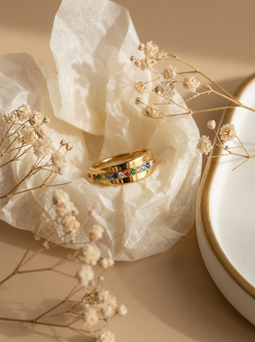 Кликер из имплантационного титана с цветными фианитами и PVD покрытием золотистого цвета (под желтое золото)
