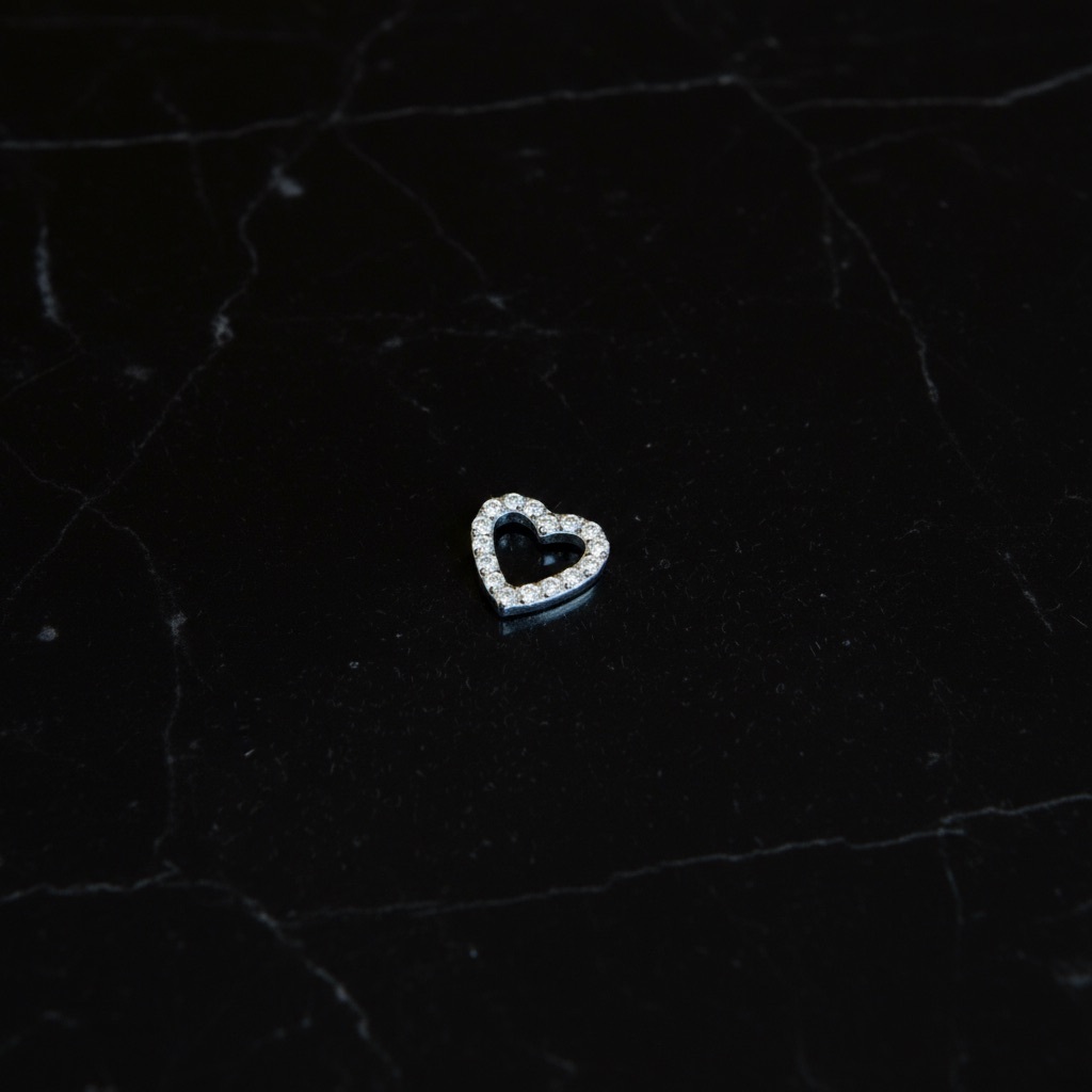 Топ из имплантационного титана в форме контурного сердца с прозрачными фианитами
