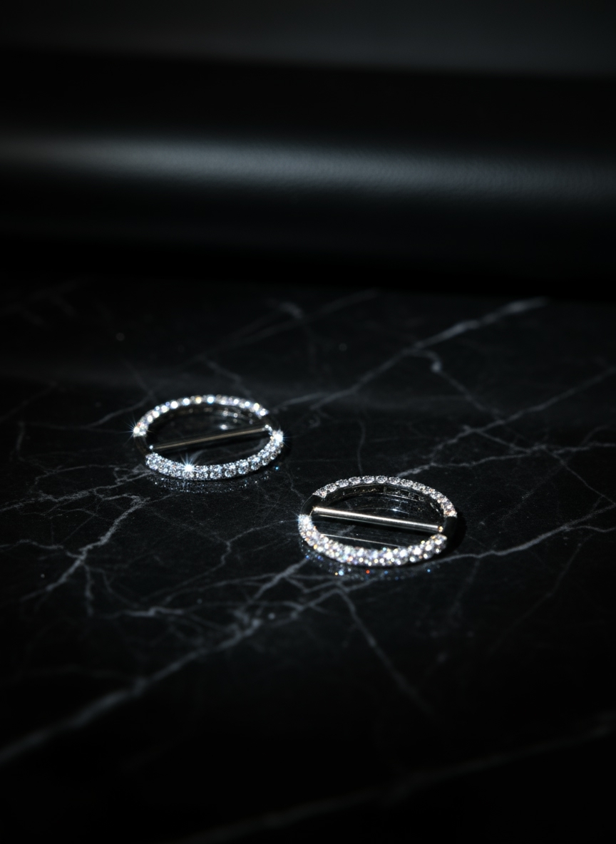Штанга для пирсинга груди из имплантационного титана с прозрачными фианитами