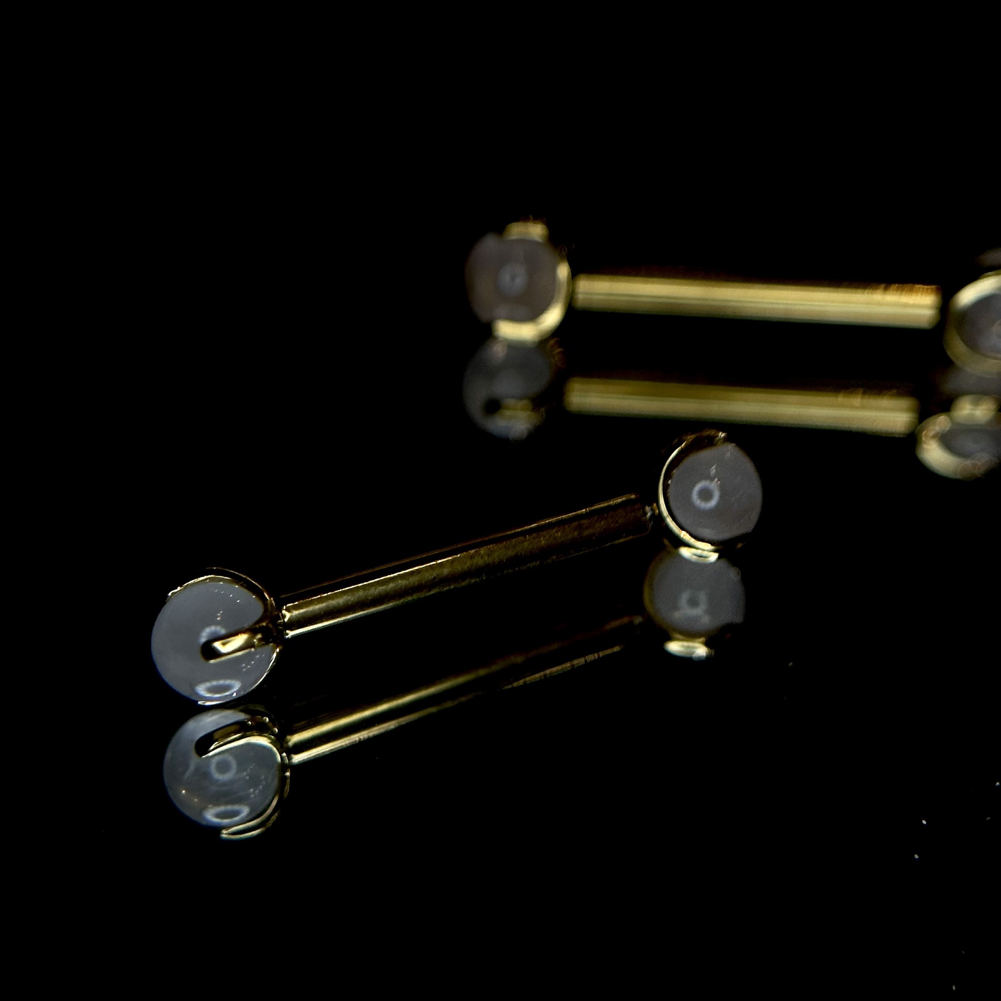 Штанга для пирсинга груди из имплантационного титана с розовым кварцем с прозрачными фианитами и PVD покрытием золотистого цвета (под желтое золото)