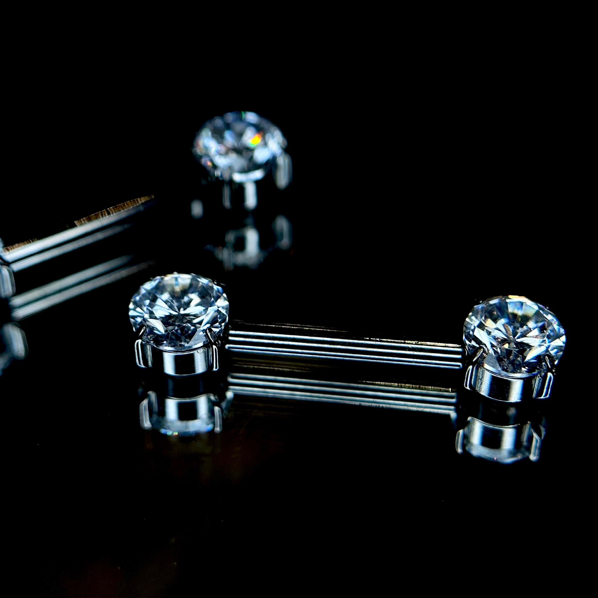 Штанга для пирсинга груди из имплантационного титана с прозрачными фианитами