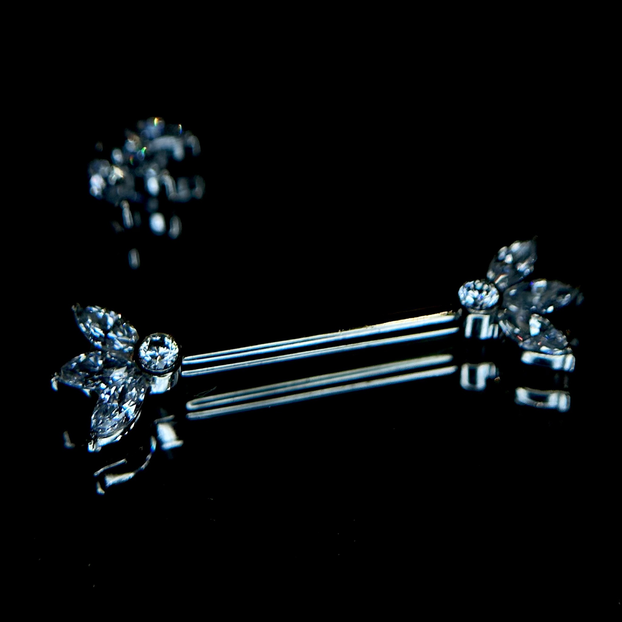 Штанга для пирсинга груди из имплантационного титана с прозрачными фианитами