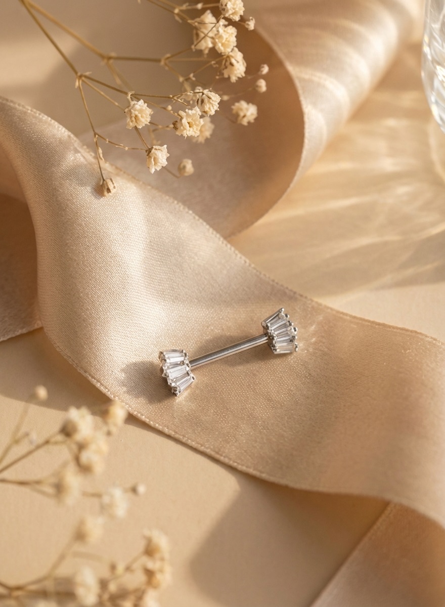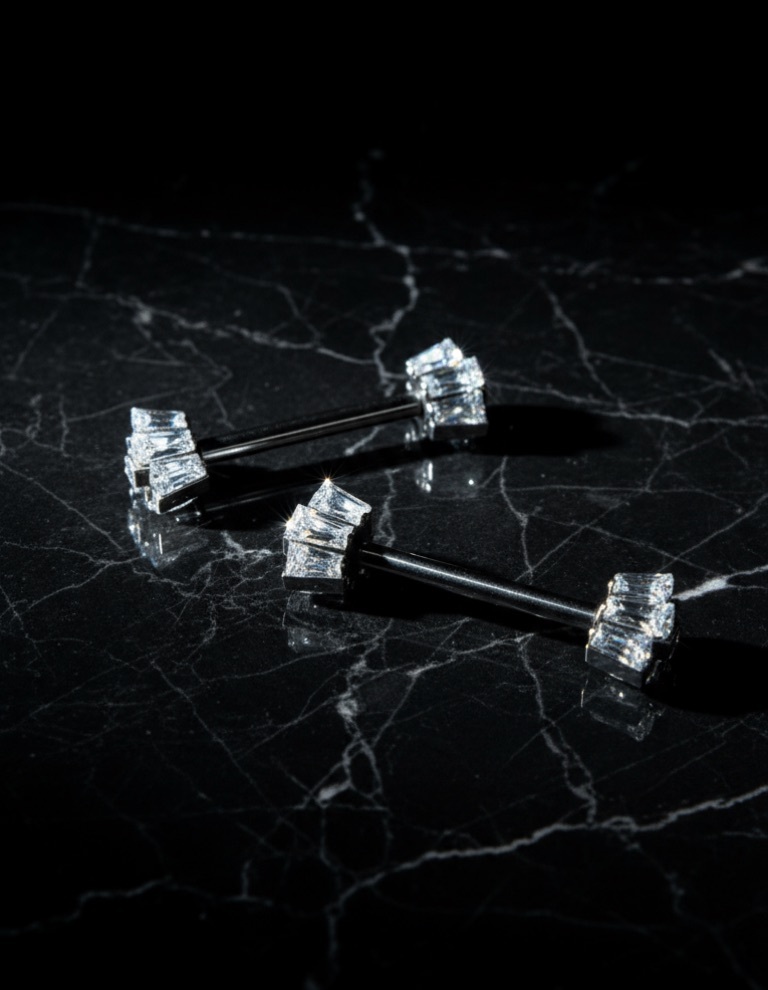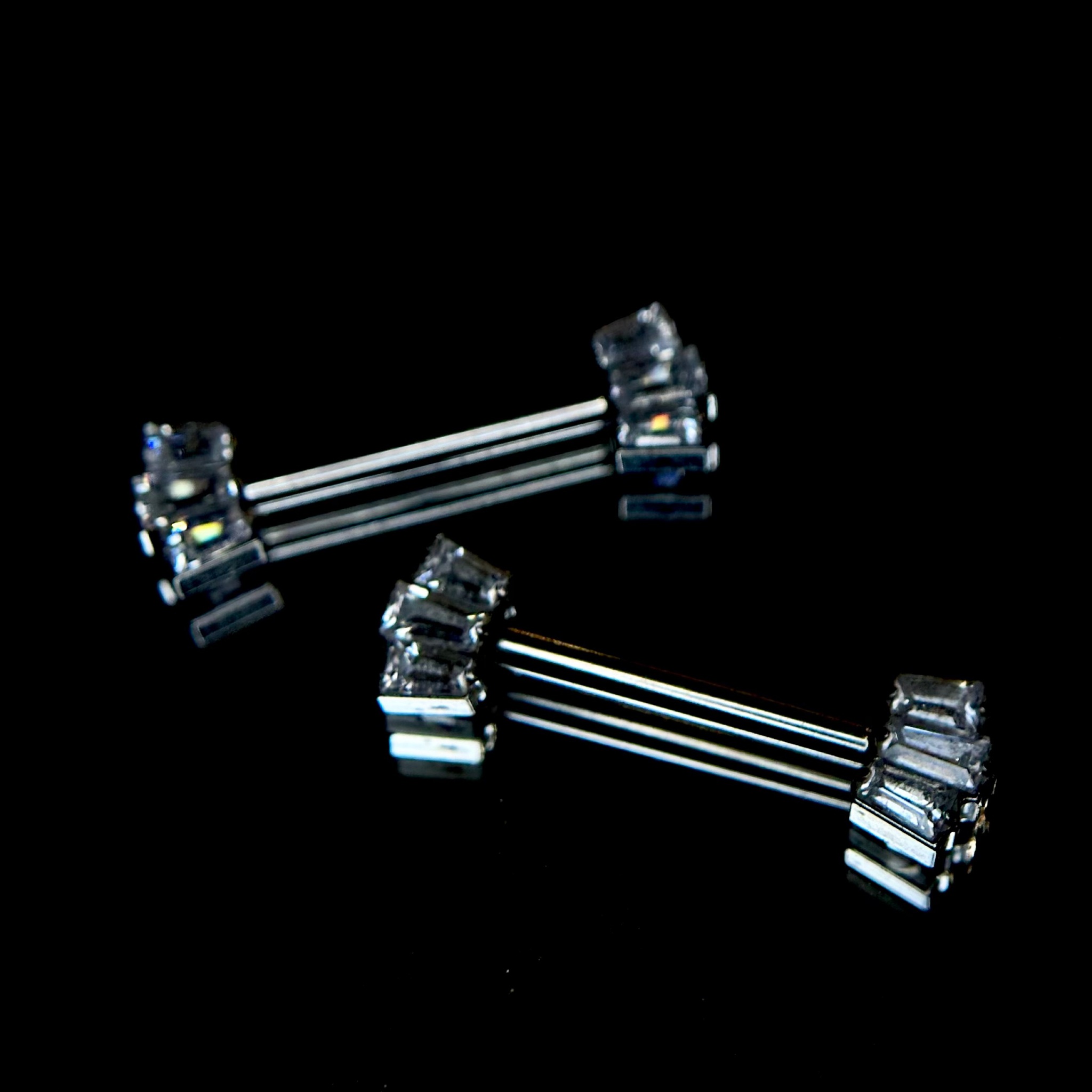 Штанга для пирсинга груди из имплантационного титана с прозрачными фианитами