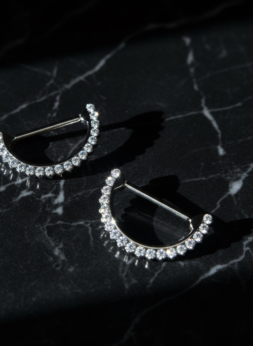Штанга для пирсинга груди из имплантационного титана с прозрачными фианитами