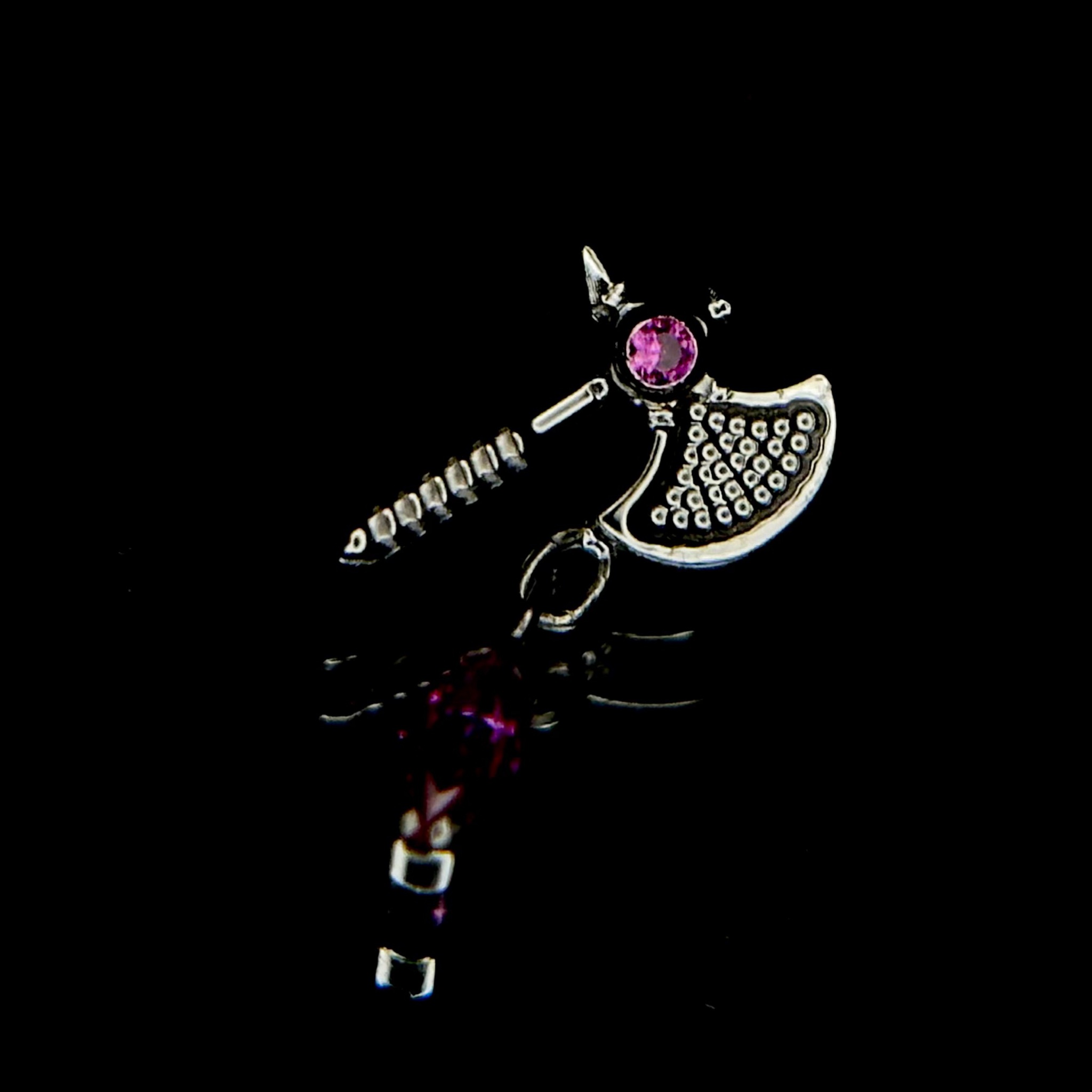 Топ из имплантационного титана в виде топора с подвеской и розовыми фианитами