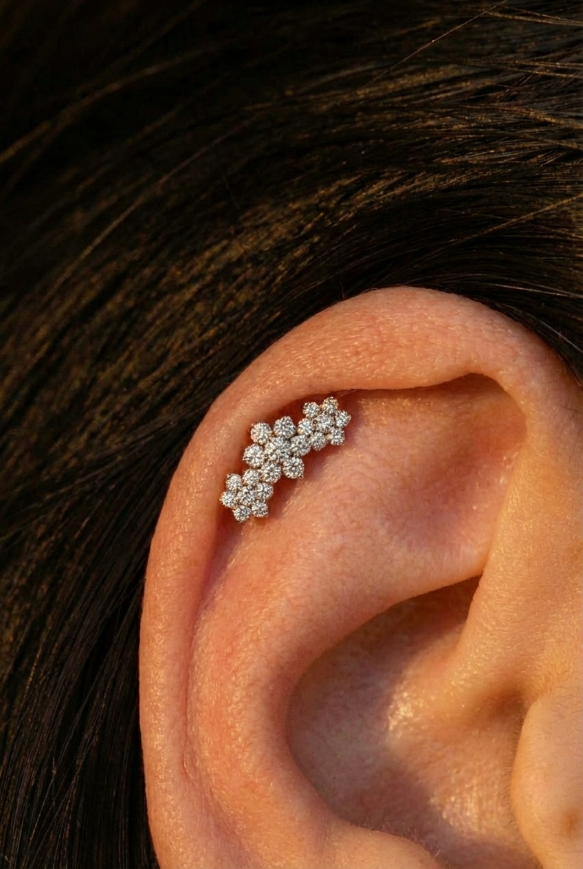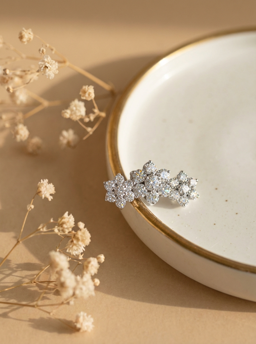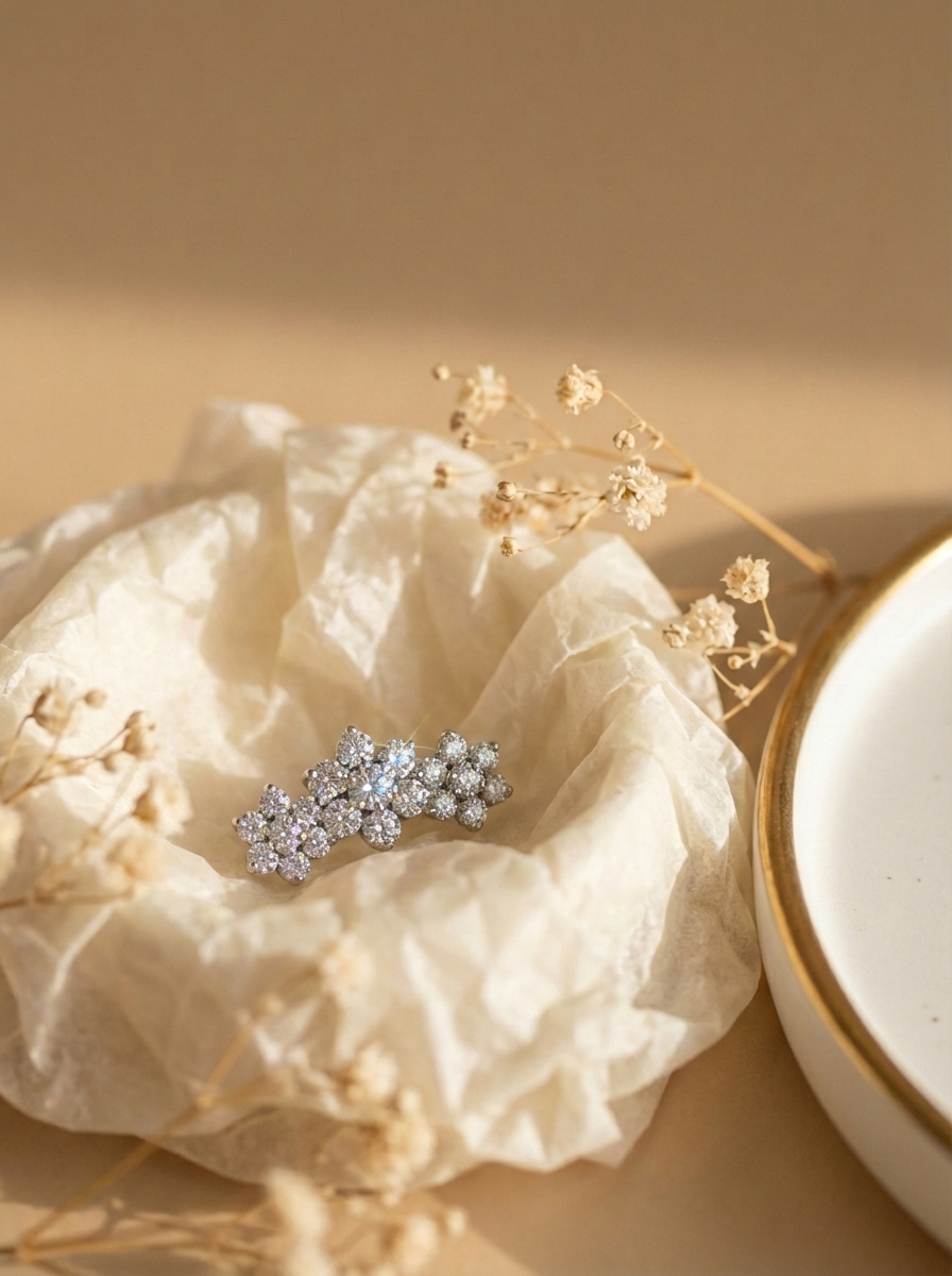Кластер из имплантационного титана в форме цветков с прозрачными фианитами
