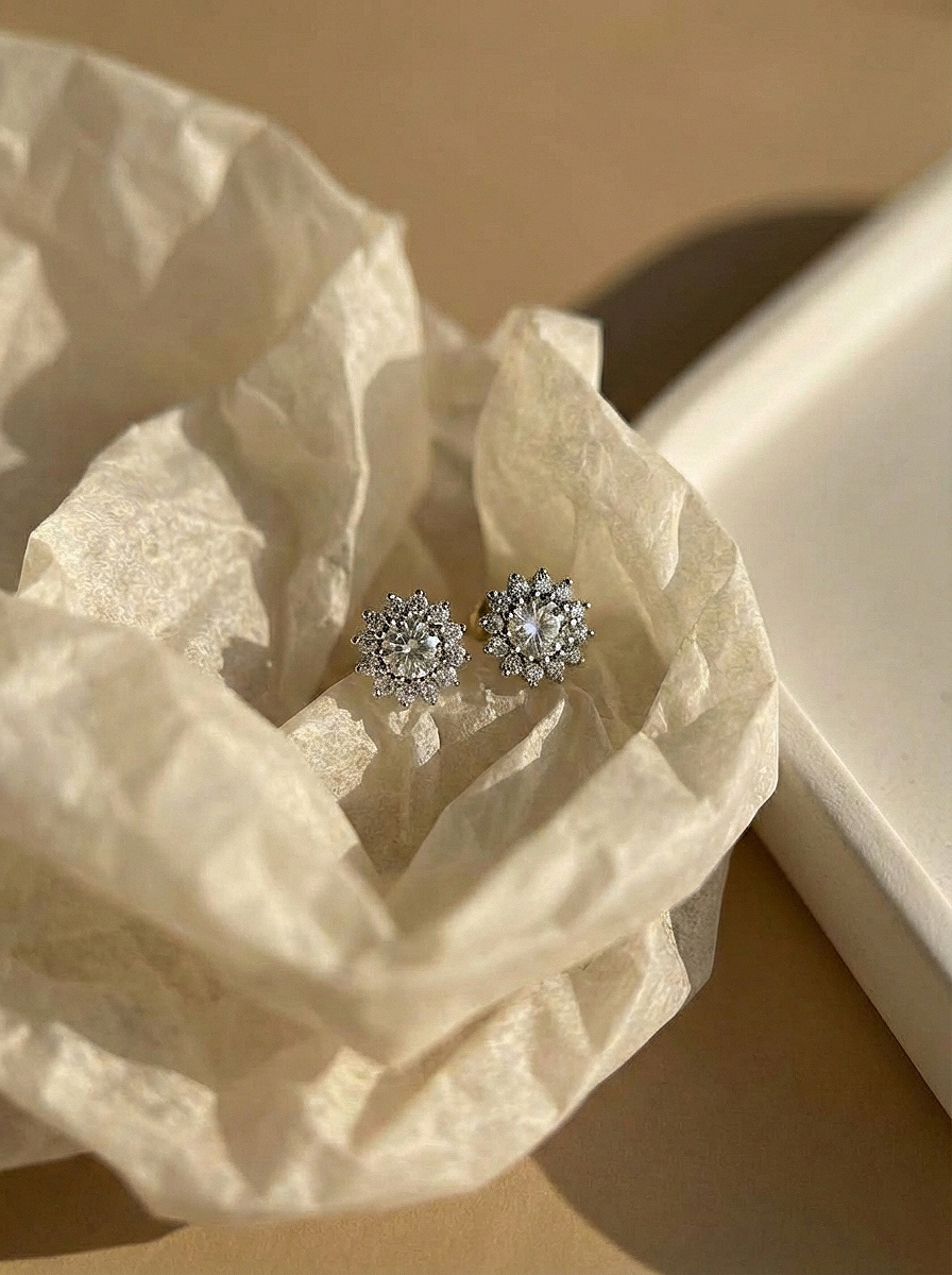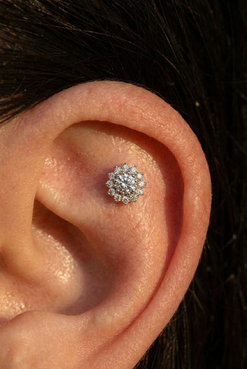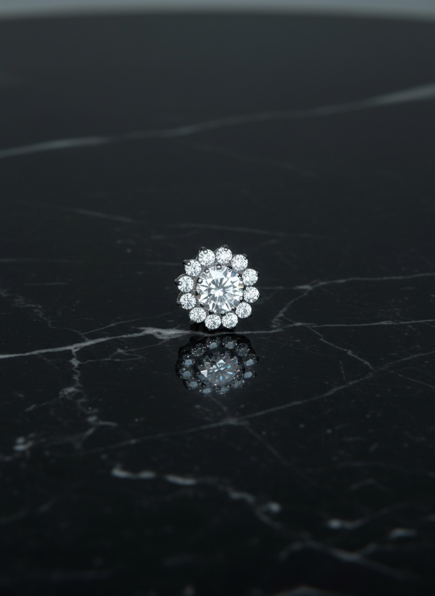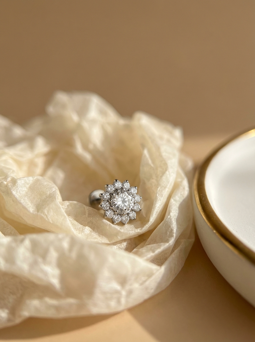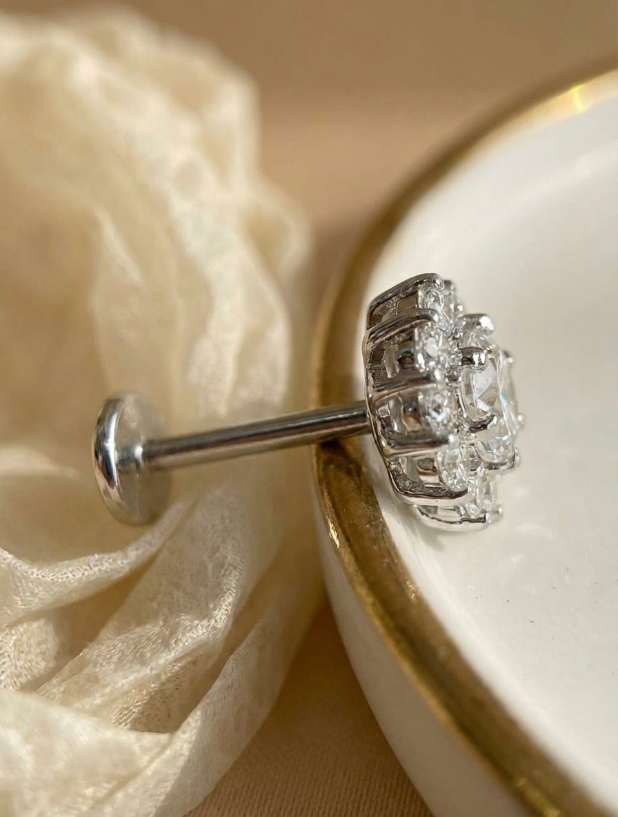 Топ из имплантационного титана в форме цветка с прозрачными фианитами
