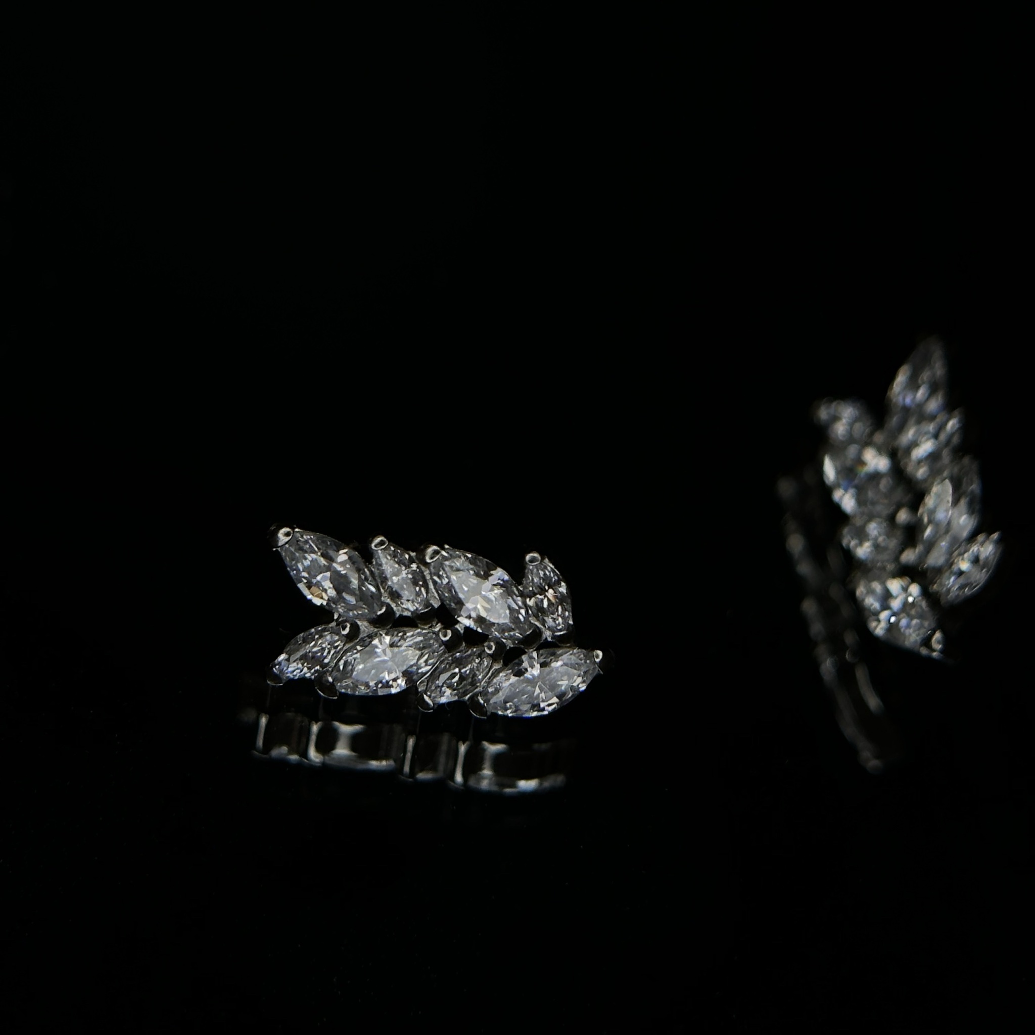Топ из имплантационного титана в виде веточки с прозрачными фианитами